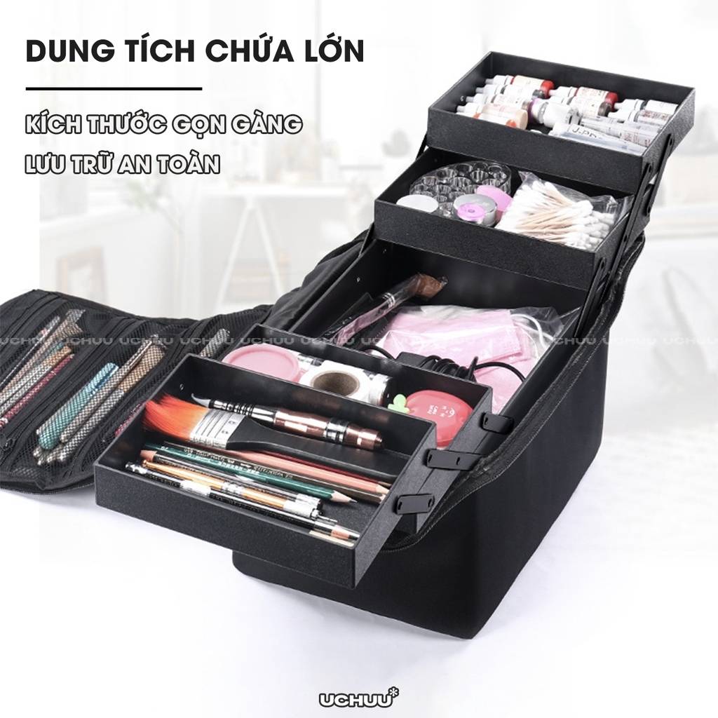 - Công dụng: đựng mỹ phẩm, đồ makeup skincare, dụng cụ nail mi,... khi đi chơi, đi du lịch. Chuyên dụng cho các makeup artist, thợ nail cần mang dụng cụ di chuyển nhiều.