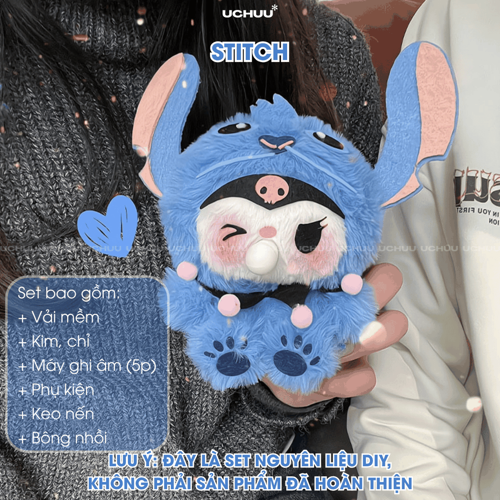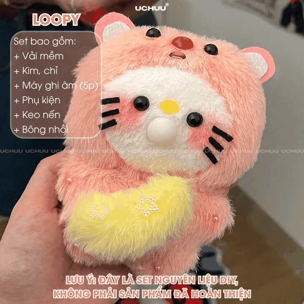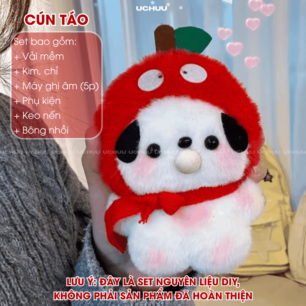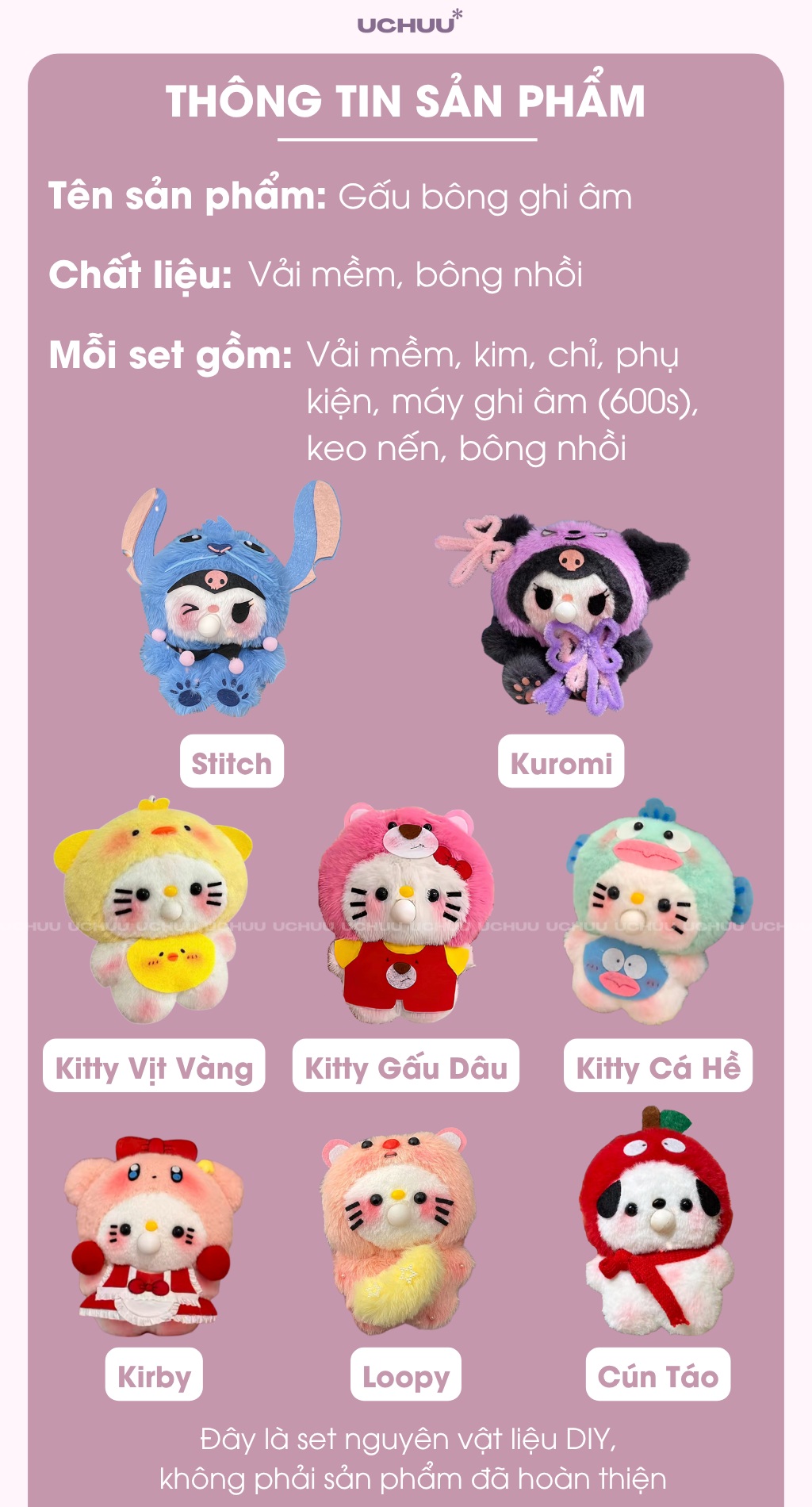 - Mỗi set gồm: vải mềm, kim, chỉ, máy ghi âm (600s), phụ kiện, keo nến, bông nhồi.