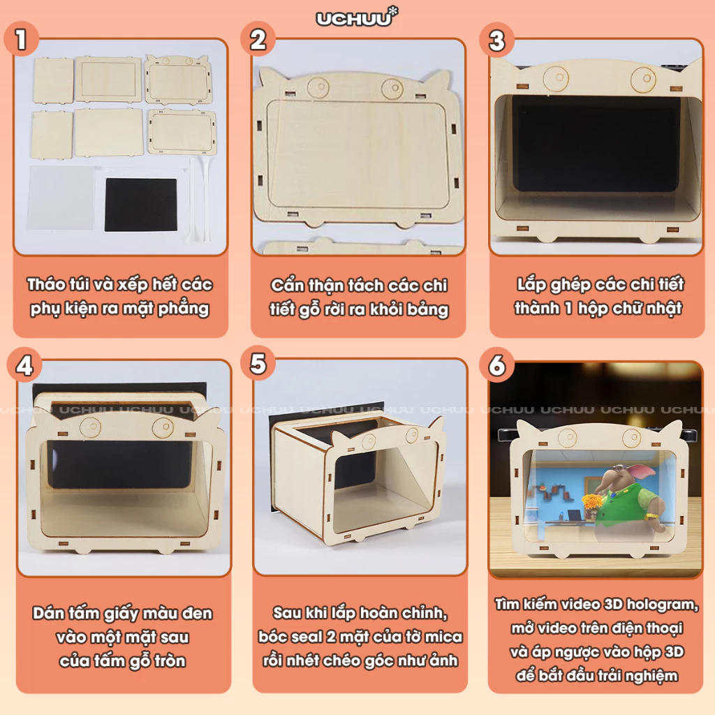 1. Thiết kế DIY tự tay lắp ghép các mảnh gỗ và tấm mica để tạo thành hộp chiếu hologram hoàn chỉnh, tăng cường khả năng tư duy logic và kỹ năng thực hành.