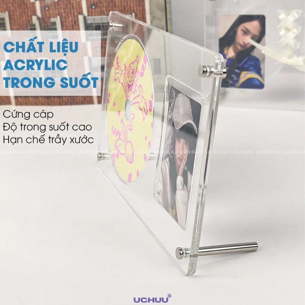 - Chất liệu: acrylic/mica + ốc vít giá đỡ inox