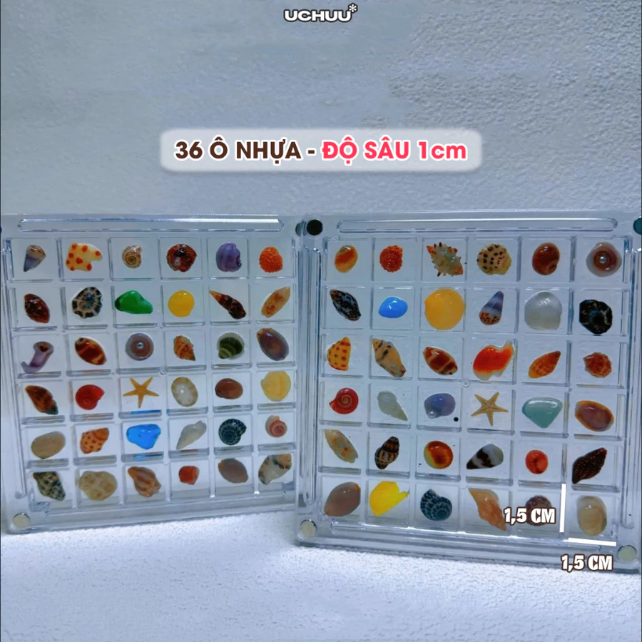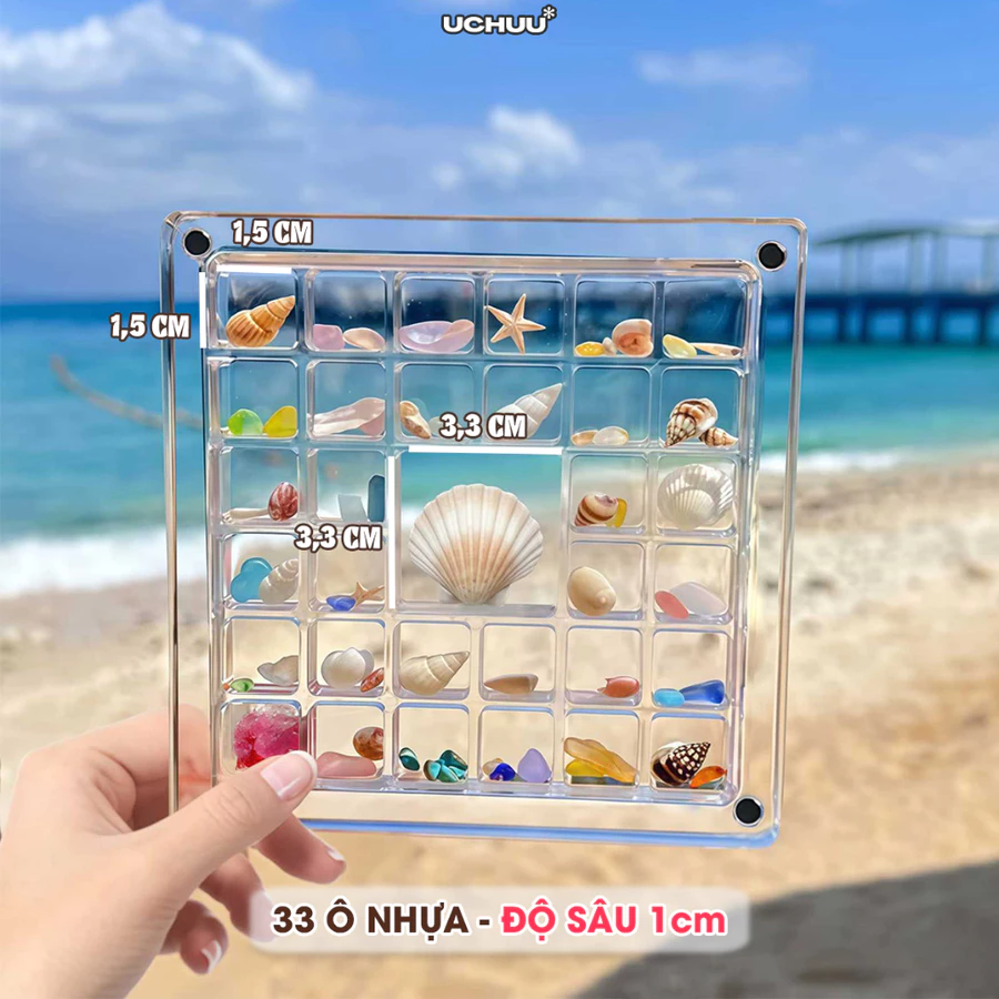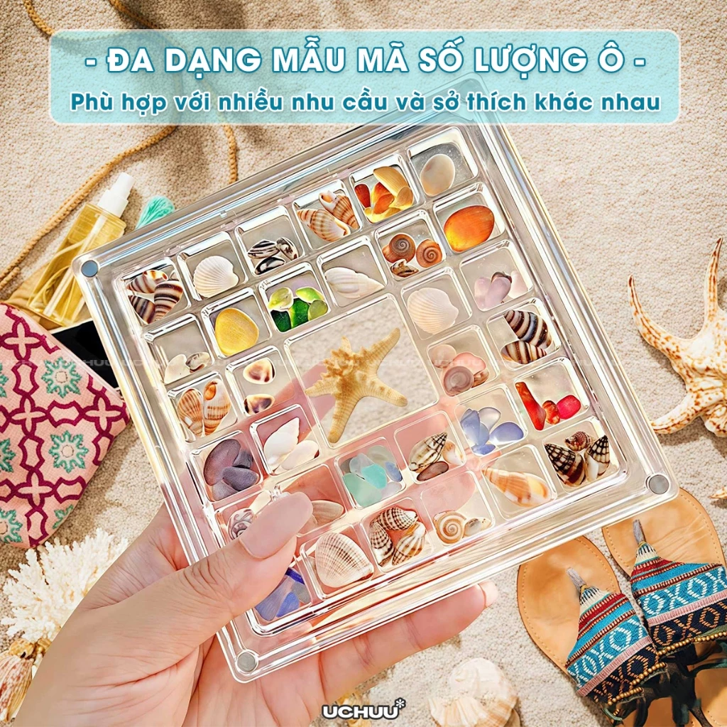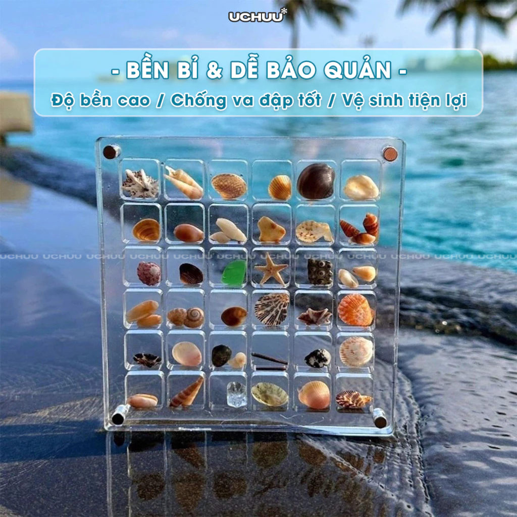1. Thiết kế hộp dạng khung trong suốt và chia ô độc đáo giúp trưng bày bộ sưu tập vỏ sò, phụ kiện, đồ lưu niệm nhỏ,... một cách gọn gàng, đẹp mắt như một tác phẩm nghệ thuật.
