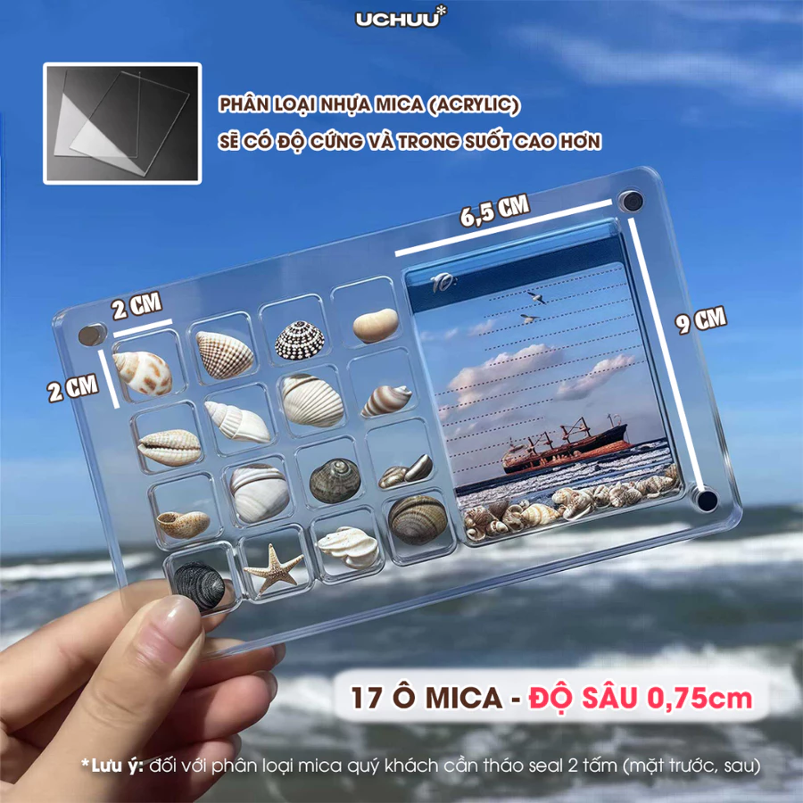 + 17 Ô Mica - độ sâu 0.75cm - ô vuông nhỏ là 2 x 2 cm, ô chữ nhật lớn 6,5 x 9 cm