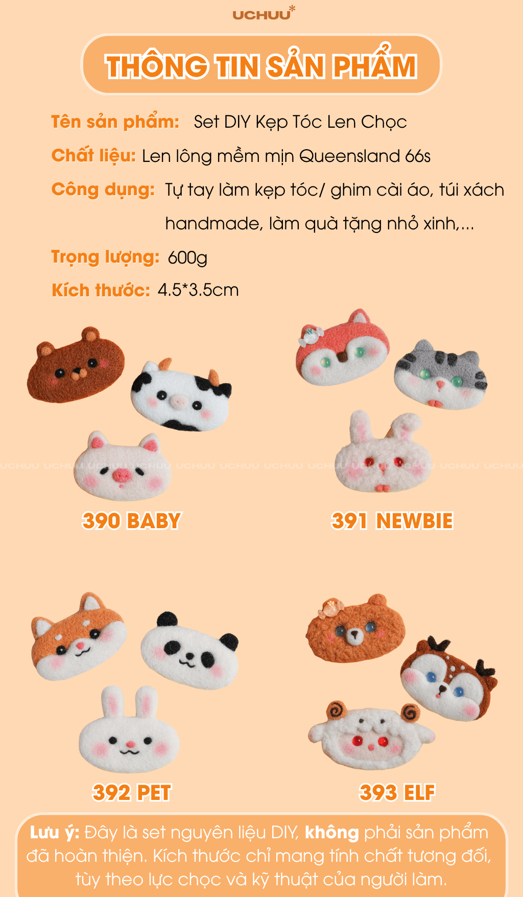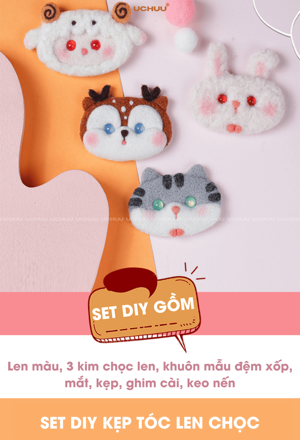 - Tên sản phẩm: Set DIY Kẹp Tóc Len Chọc