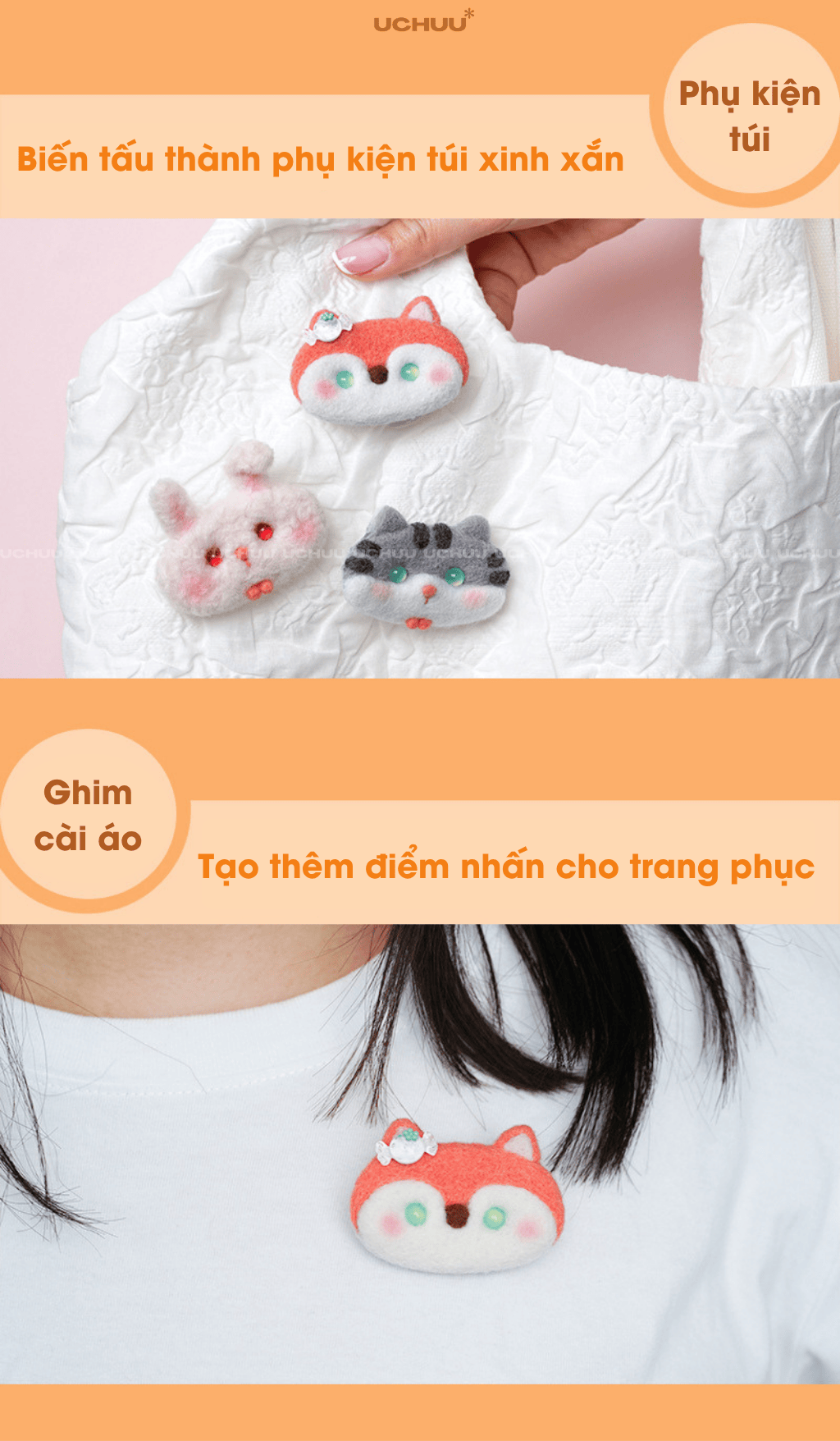 - Công dụng: tự tay làm kẹp tóc/ ghim cài áo, túi xách handmade, làm quà tặng nhỏ xinh,...