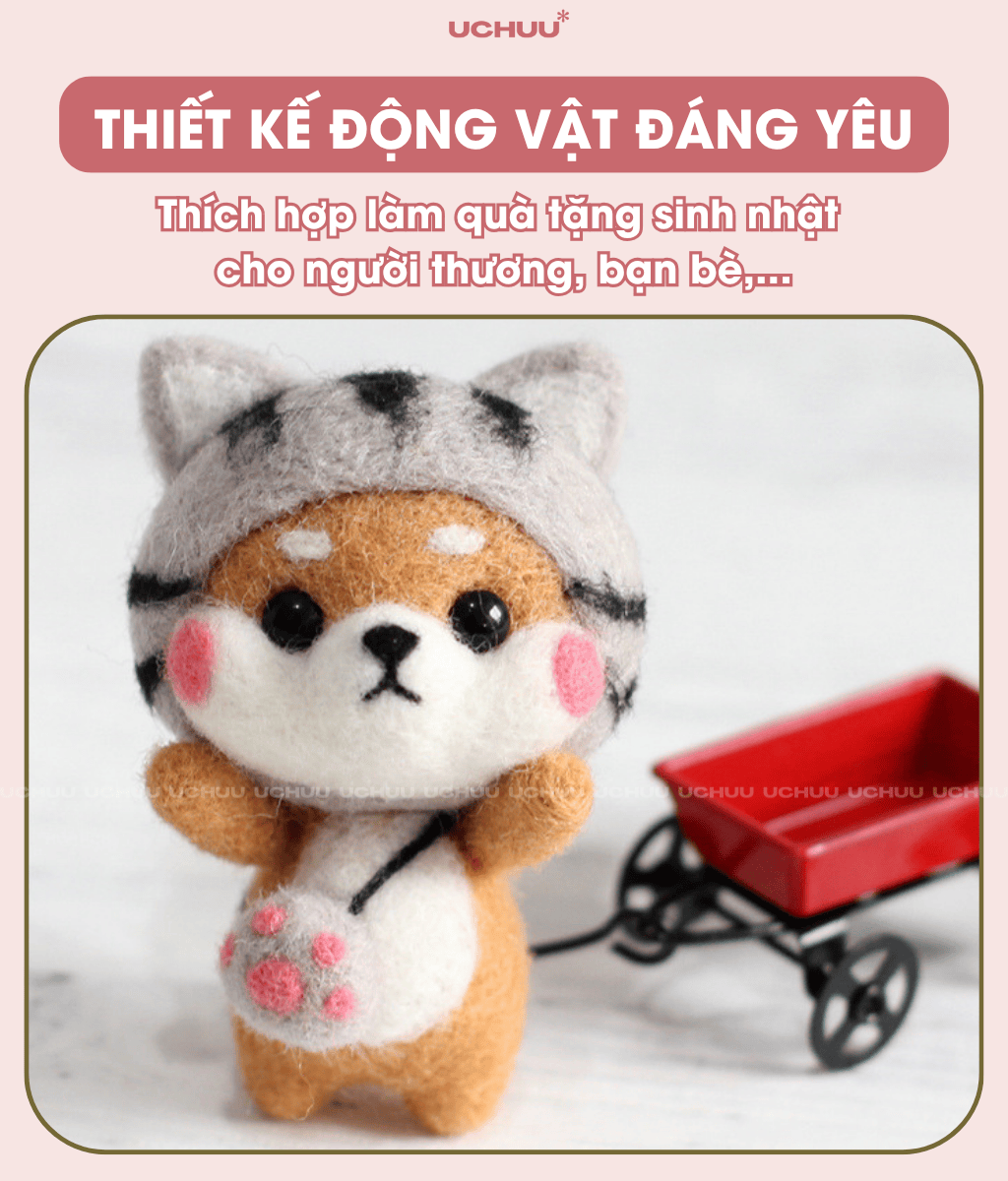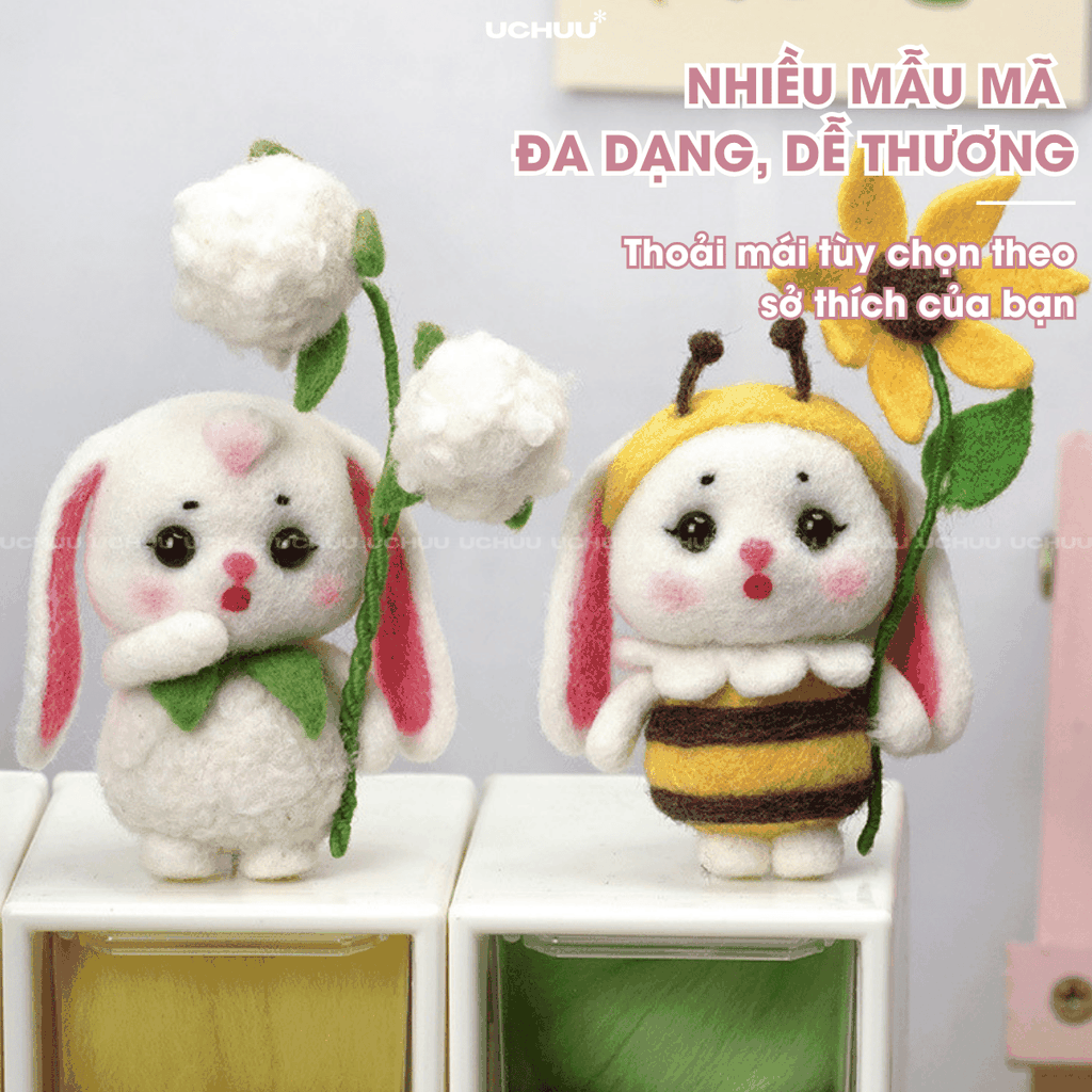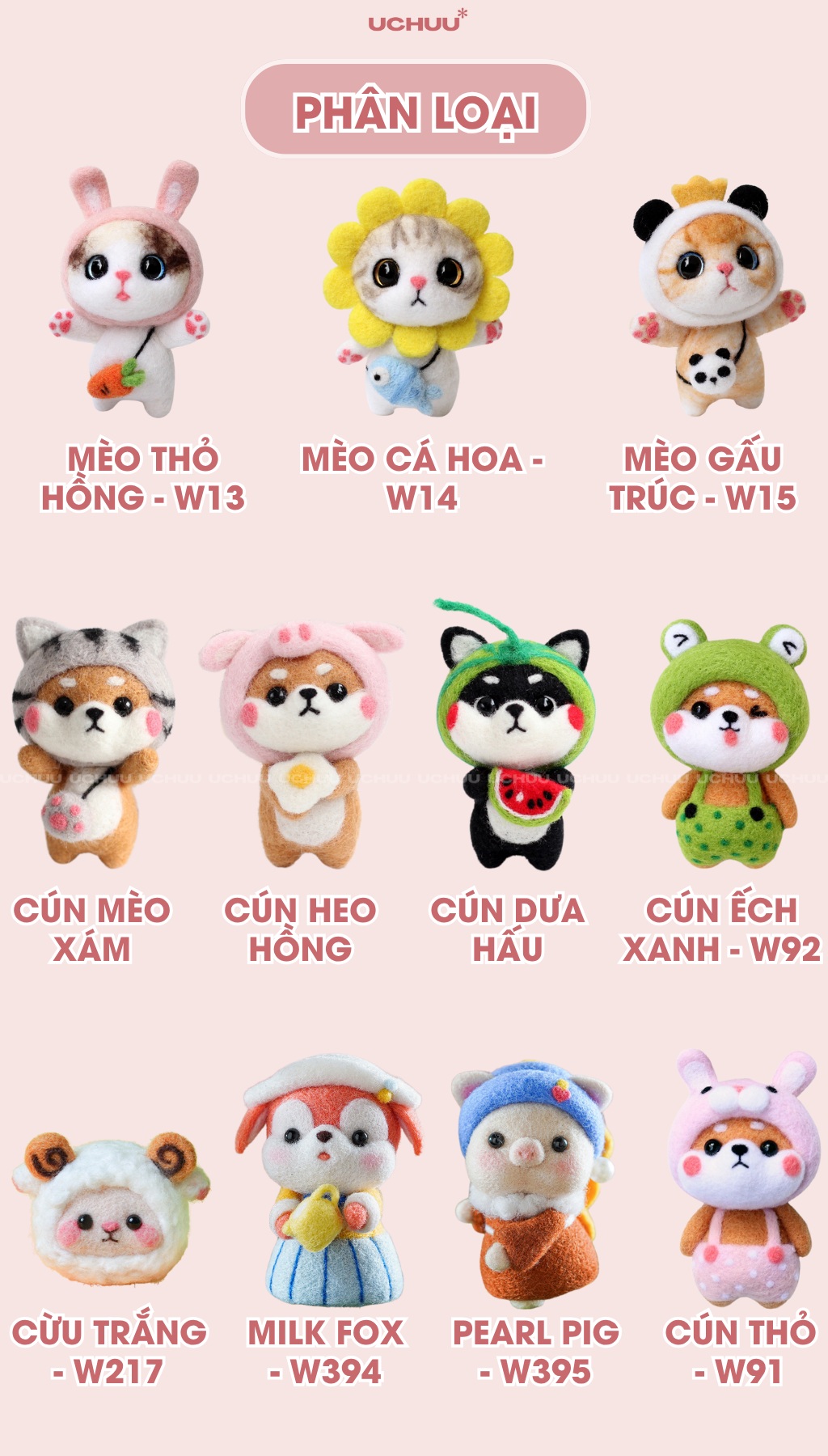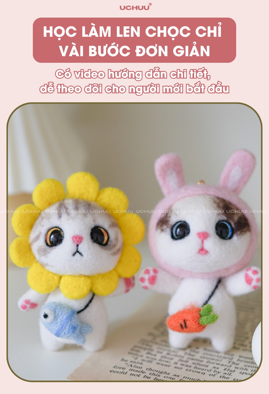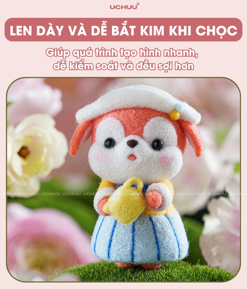 1. Set len chọc động vật mang đến trải nghiệm handmade thú vị khi bạn tự tay tạo nên những bé thú bông đáng yêu như cún, thỏ, mèo, cừu, capybara, cáo hay heo nhỏ xinh.