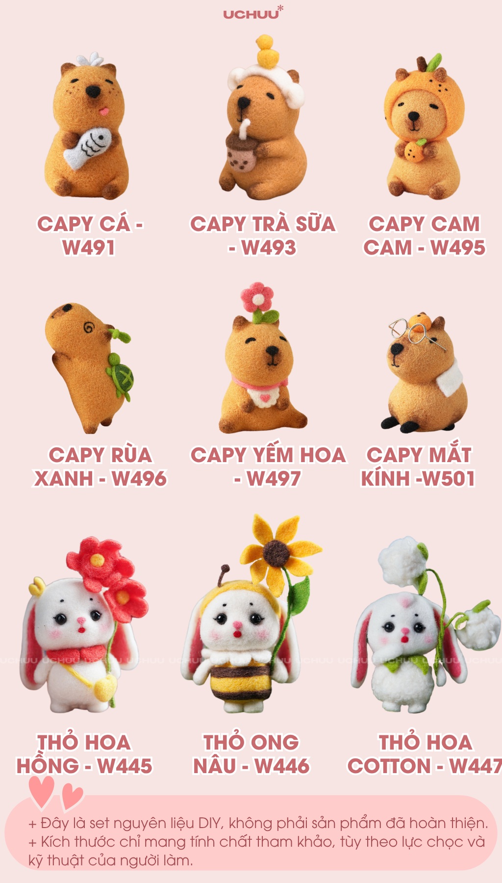 #lenchocdongvat #lenchochandmade #bolenchoc #thubonglenchoc #needlefelt #dungcuchoclen #bokitlenchoc #setnguyenlieudiy #handmade #lenchoc #choclen #quatang #diy #combolenchoc #thubongmini #meo #cun #capybara