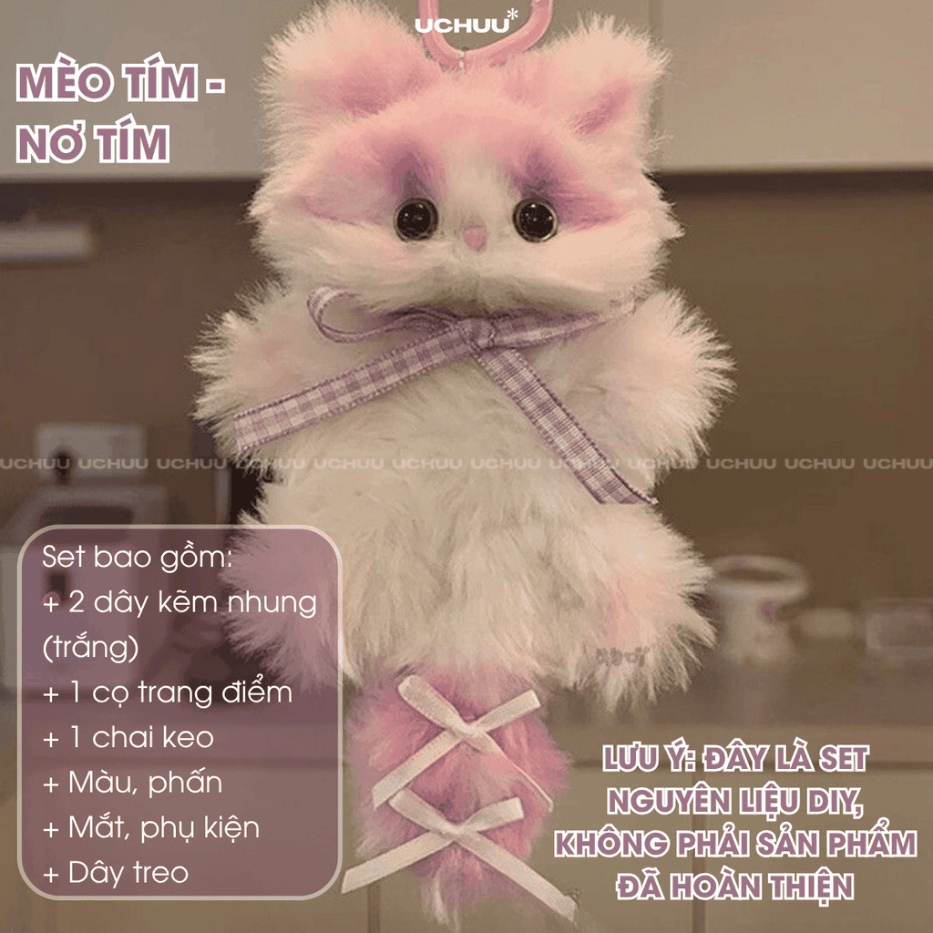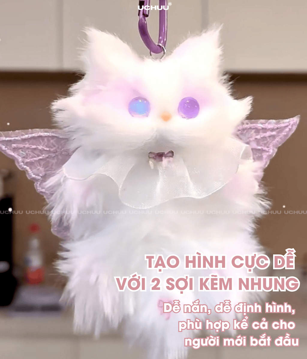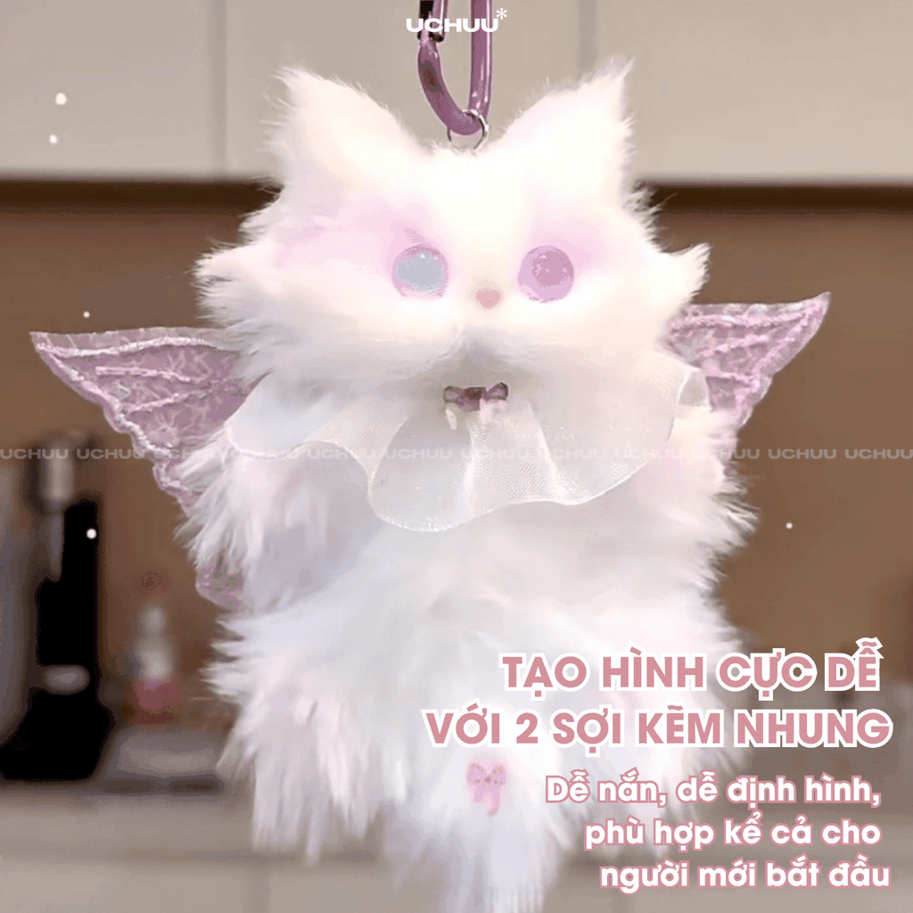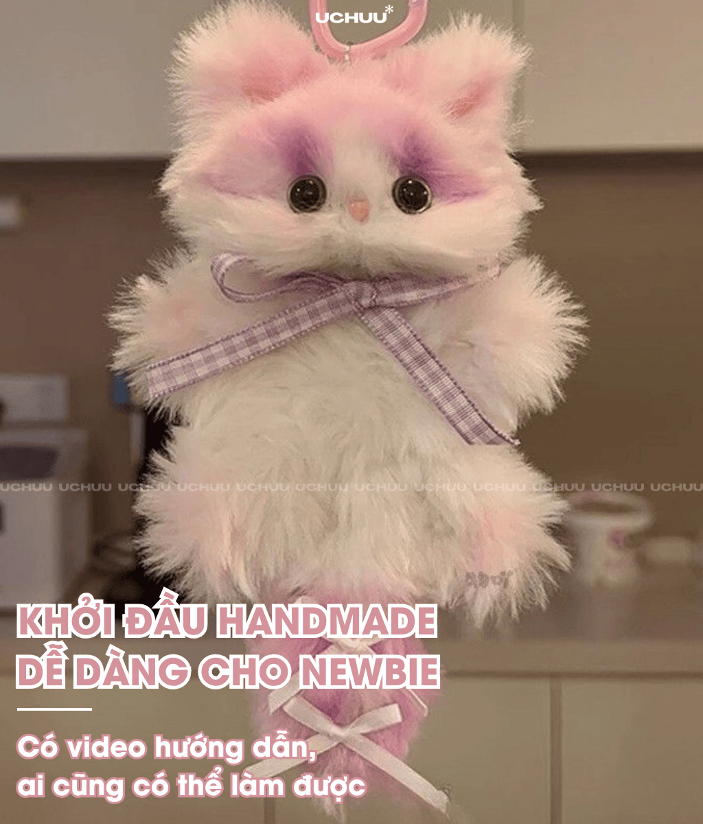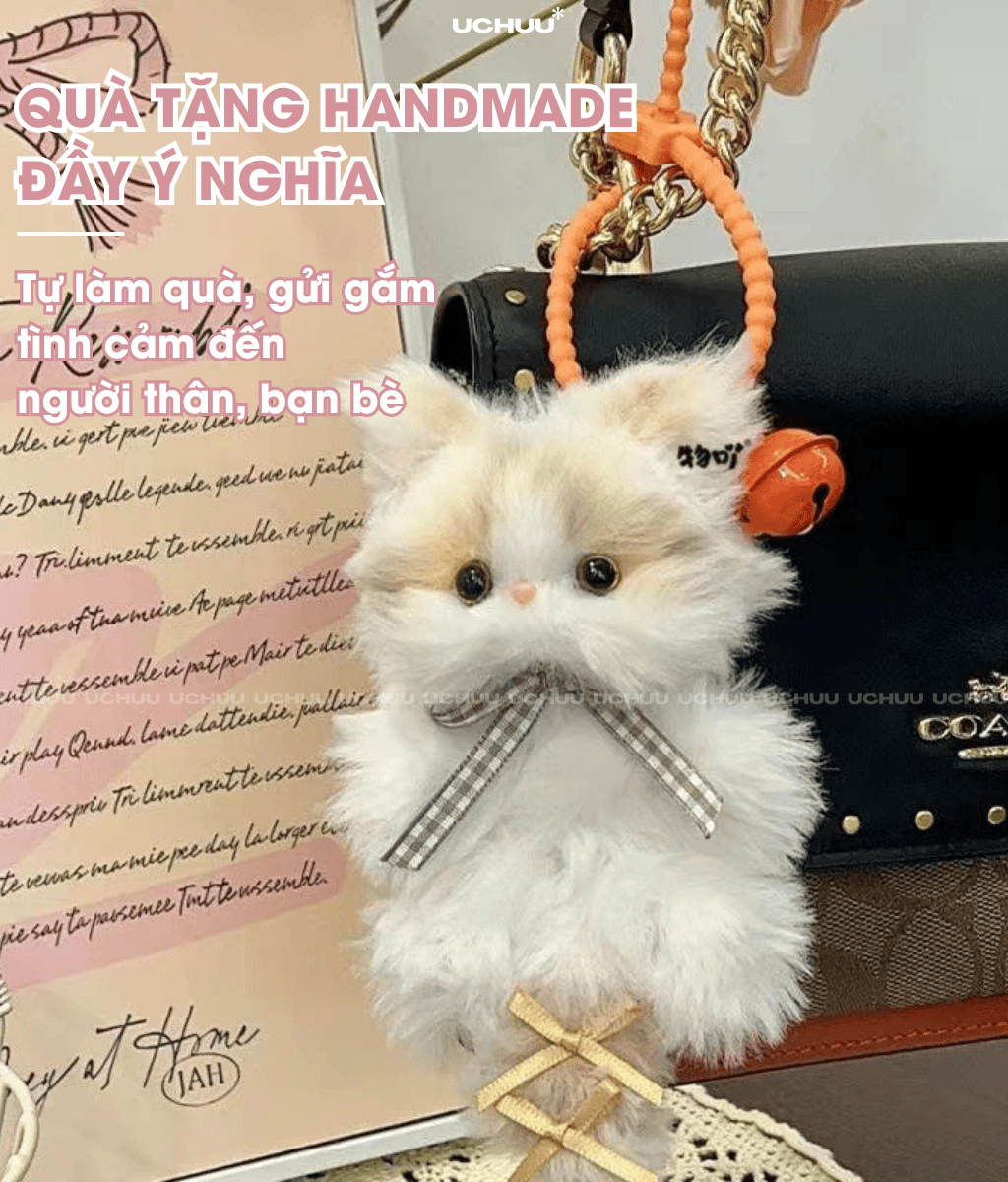 1. Set nguyên liệu đầy đủ giúp bạn tự tay làm nên chiếc móc khóa bé mèo bông siêu dễ thương.