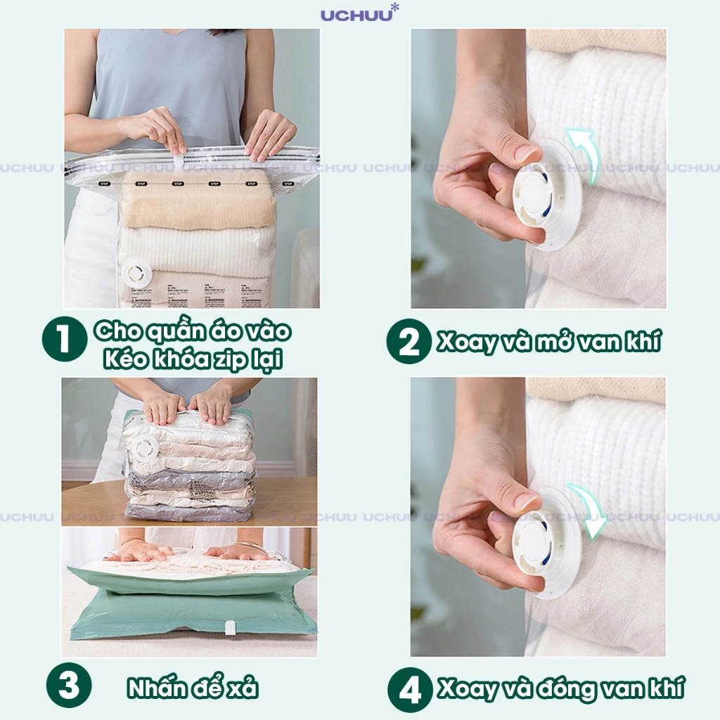 Chú ý: KHÔNG CẦN các sản phẩm máy hút, bơm tay . Chỉ cần kéo khoá ZIP và nhấn xuống từ từ
