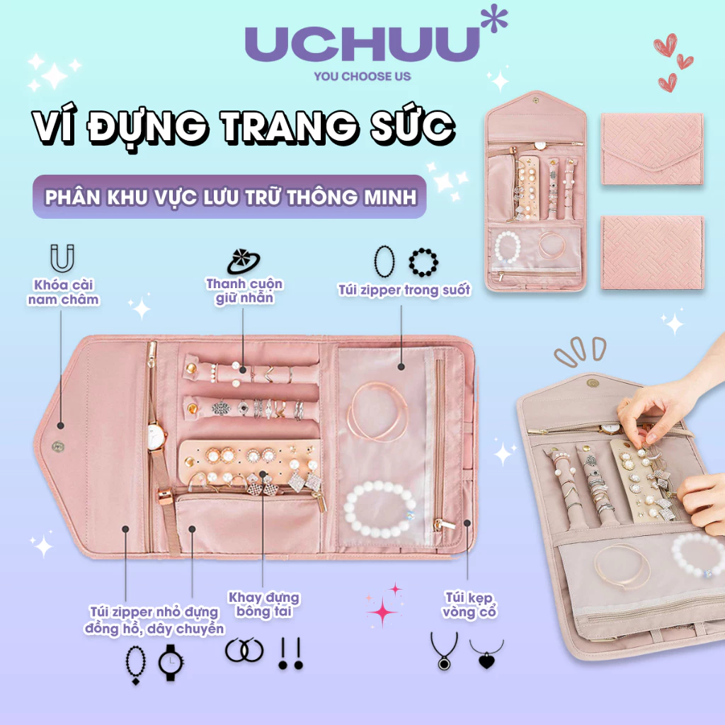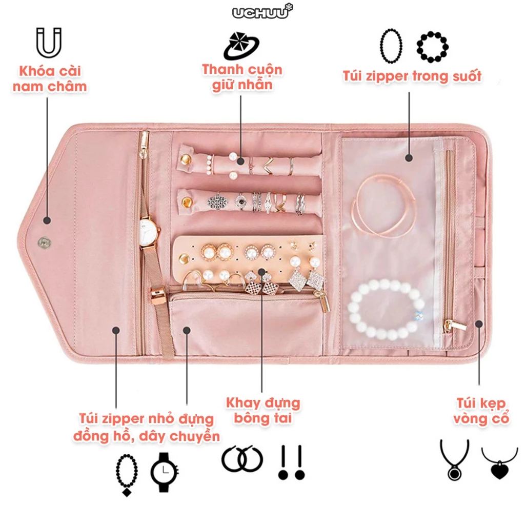 - Công dụng: ví đựng trang sức du lịch, đi chơi, công tác,...